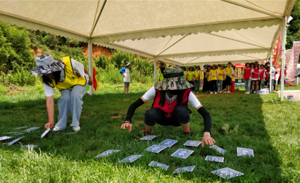 考验团队信任、责任感和挑战自我的精神。在确保安全的前提下,每位成员都需要在队友的帮助下,取到放置于身体极限距离外的水瓶。